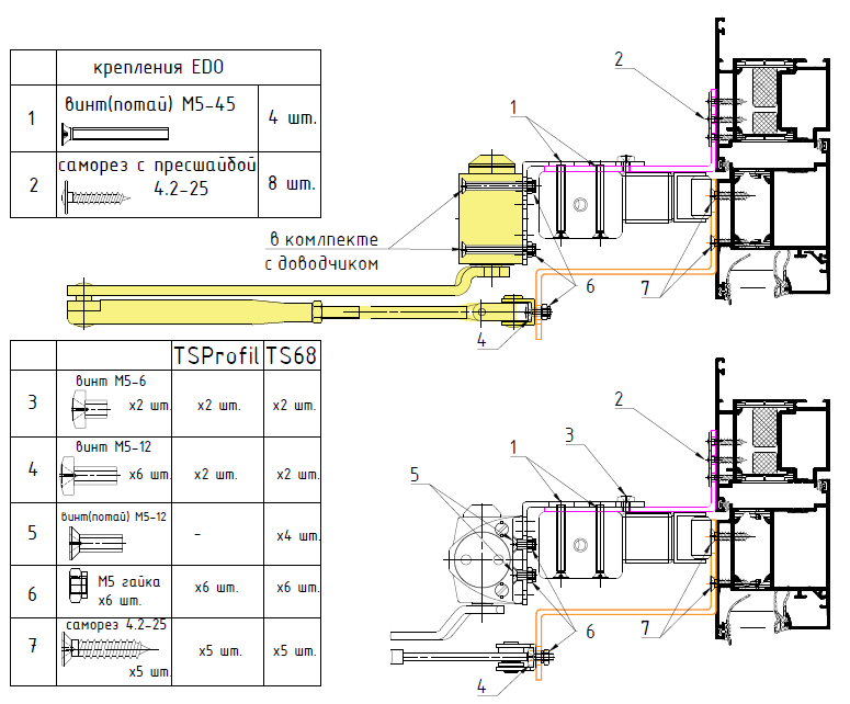 Кронштейны (монтажный набор) для внешнего открывания аварийных дверей с электроприводом EDO 600 при совместной установке с гидравлическим доводчиком. Крепеж в комплекте. Подходит подходит для доводчиков: TS68 / TSProfil (39мм) TS 71 / TS 72 /TS 73V / TS 83 (45мм).