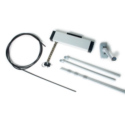 - Каждый комплект включает в себя: ручку, прибор (замок), трос, угловые переходники, наконечники и кабель-канал для укладки троса.