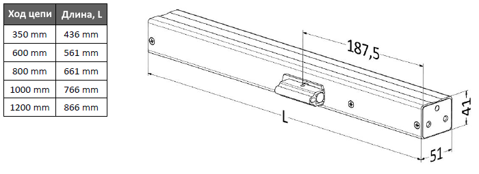 - Ход цепи 350, 600, 800, 1000, 1200 мм