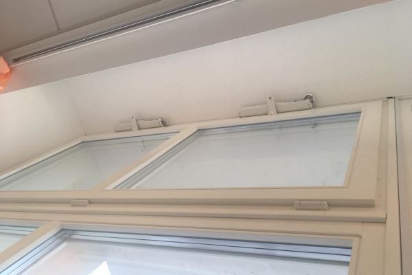 Дистанционное управление и система дымоудаления в офисе Альфа-Банка г. Екатеринбург. Установлены электроприводы с синхронизацией для шировких створок SYNCRO KATO 24. Автоматическое управление с блоками C-SV 4A.